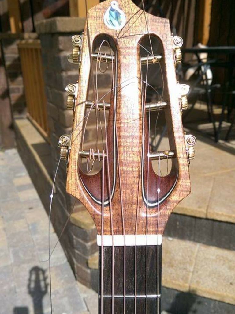 The accompanying audio clip is a Hook guitar, "Hooklet" model with all figured Mahogany body. It is being played by the wonderful King Cedar aka Stephen Macartney, check his music out, it is beautiful.